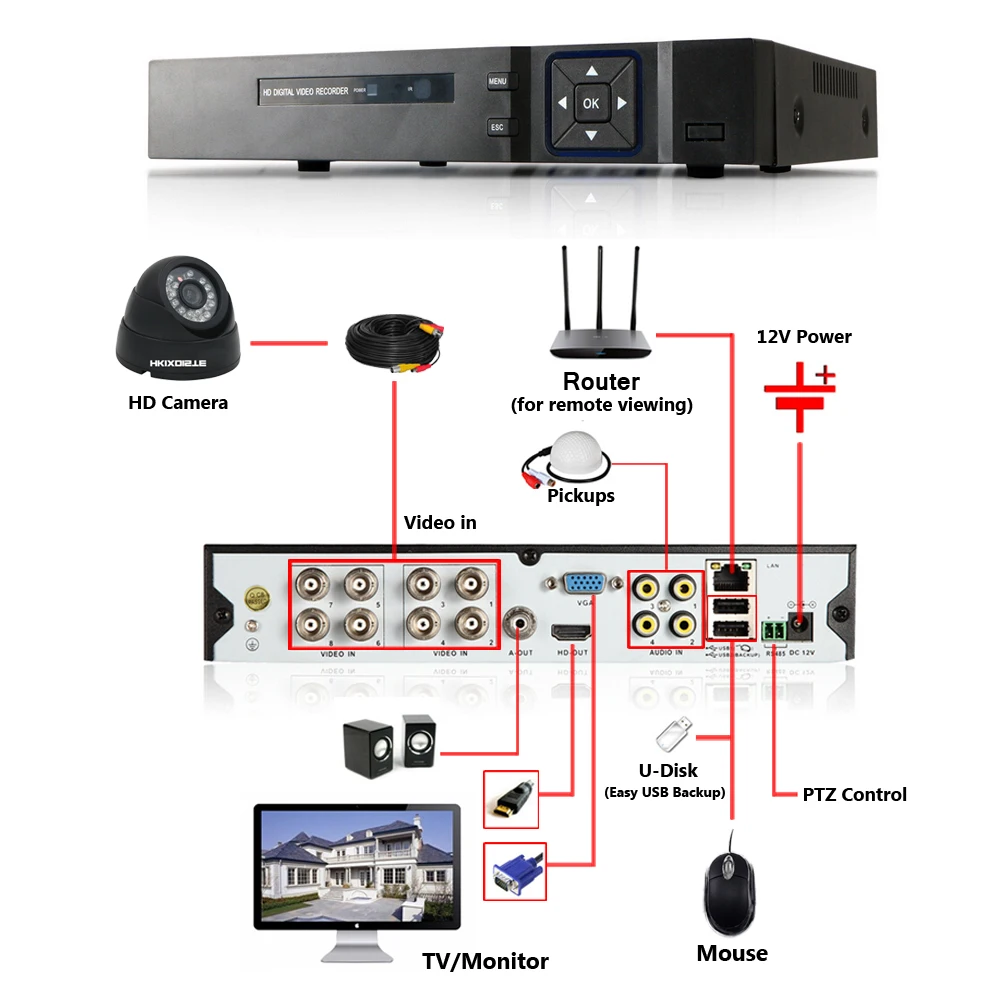 8CH 1080P HDMI DVR 3000TVL 1080P HD Indoor Surveillance Security Camera System 8 Channel CCTV DVR K