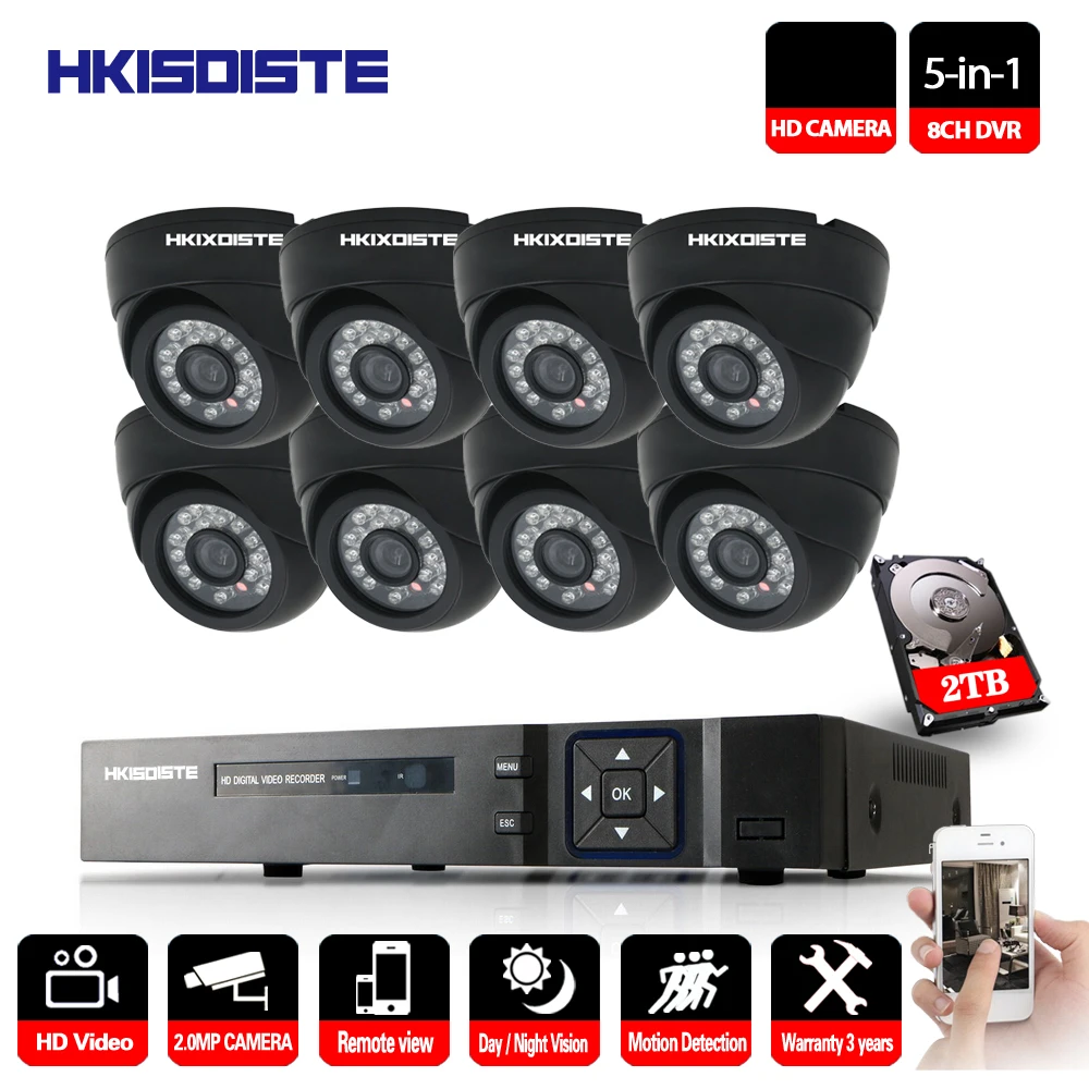 TOP 8CH 1080P HDMI DVR 3000TVL 1080P HD Indoor Surveillance Security Camera System 8 Channel CCTV DVR K