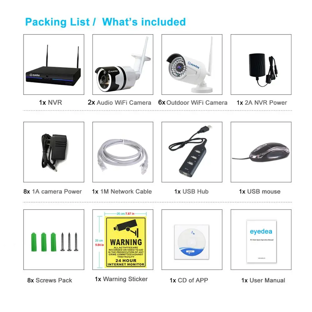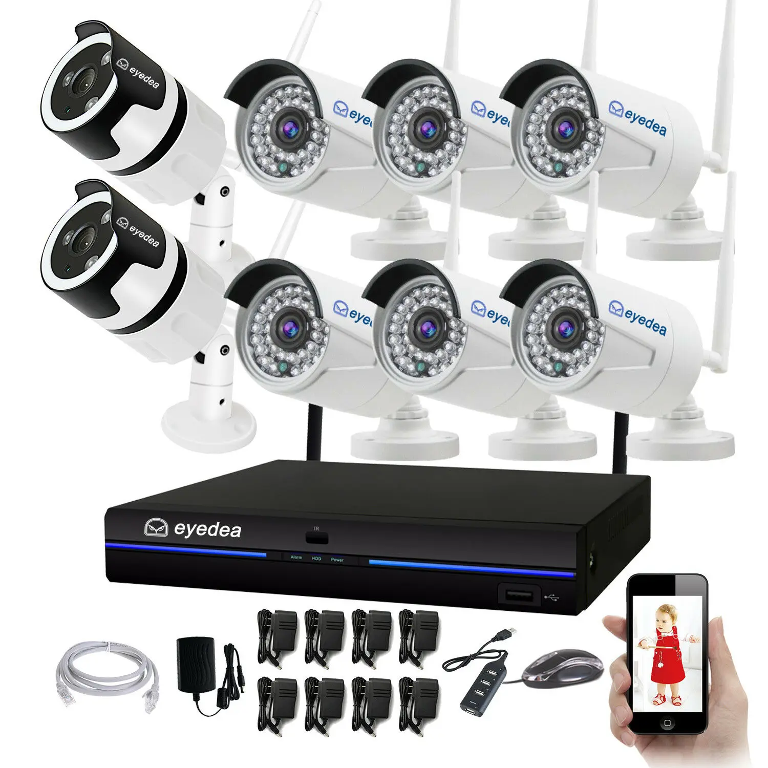 Eyedea 8 CH 1080P Wireless NVR 2.0MP Phone View 6 Outdoor 2 Audio Indoor Waterproof Wifi Security C